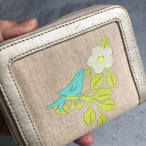 Vera Bradley Zip Wallet Birdie Linen Leather Trim