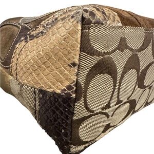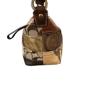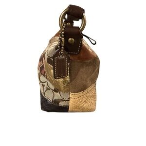 • Era: Vintage (around 2003). Elegant Coach bag with a unique patchwork design. Features a blend of brown, tan, and cream patterns. Ideal for a stylish look.