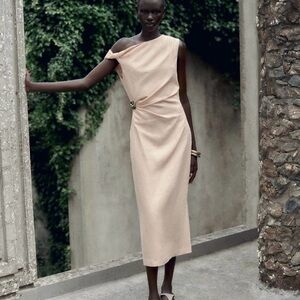 Zara One Shoulder Dress in Soft Cream