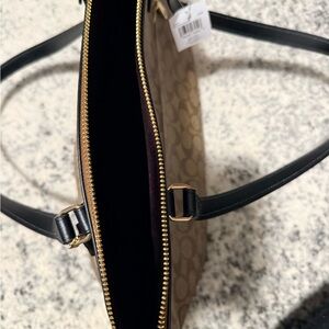 Elevate your style with the Coach Brown Signature Tote Bag. This elegant bag features a classic design with black accents, perfect for any occasion.
