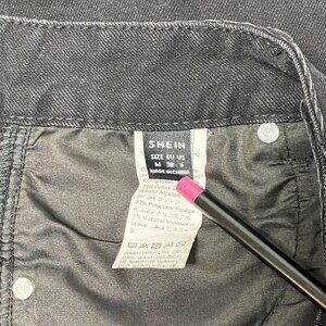 Shein Black Denim Pencil Skirt 6 Midi High Side Slit Stretch Jeans