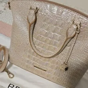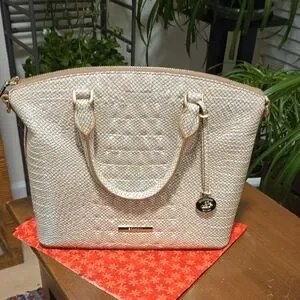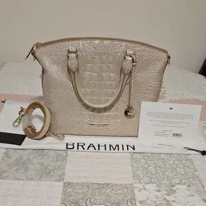 Brand New Brahmin Duxbury satchel in Tiramisu. This is a gorgeous shimmering/iridescent cream color. Like mother of pearl atop the cream base.