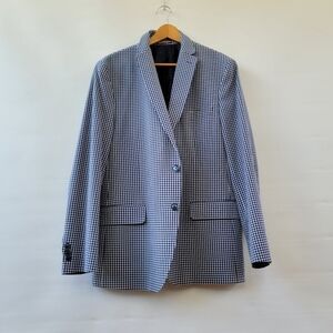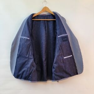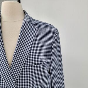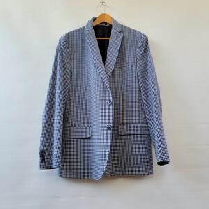 Tommy Hilfiger Navy Blue Gingham Checkered Sports Coat 44R Blazer Preppy Jacket