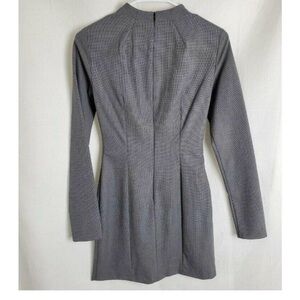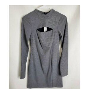 NWT Zara gray front chest cut out Houndstooth sheath mini dress long sleeves size M