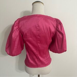 Lovers Friends Bene Top Pink Puff Princess Sleeve Barbie Shiny Twist Blouse