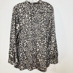 LOFT Leopard Print Silk Feel Silky Mock Neck Long Sleeve Blouse Top Shirt 16
