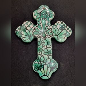 Rustic Handmade Green Floral Cross – Southwestern & Spiritual Accent