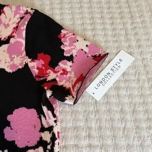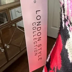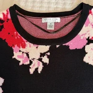 London Style Collection Sweater Dress in Black, Red & Pink SO CUTE - M NWT