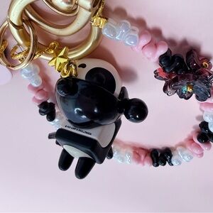 Handmade Skull Panda Mahjong authentic PopBean heart shape black pink keychain