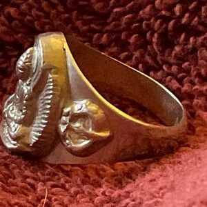 Cool Sterling silver ring featuring a detailed Buddha design. Perfect for adding a spiritual touch to your style.