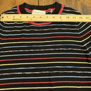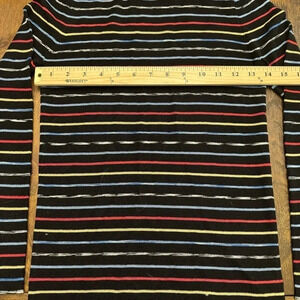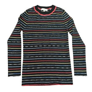 Excellent condition White + Warren crew neck long sleeved top. XS. From Saks. Colored stripes on black background. No visible signs of wear. See pictures for approximate measurements. Smoke free home. Retail $255. Saks. Shopbop.