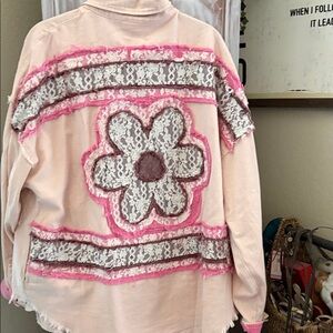 Oli & Hali Pink Button Down Shirt with Floral Accents