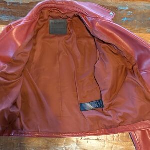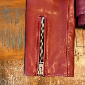 Bold dark cherry leather jacket with silver zippers. Classic biker style. Perfect for a statement look. Worn 4 times with no stains, marks or signs of wear.