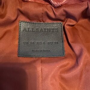 All Saints Dark-Cherry Leather Balfern Biker Jacket (size- US:6, EU:38, UK:10)