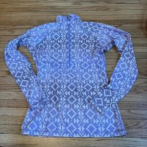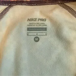 Nike Pro pullover with cream body and purple accents. Ideal for active wear.