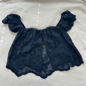 Lovers + Friends Navy Blue Lace Sheer Off the Shoulder Top Size M