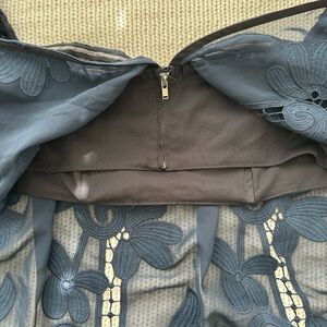 lace overlay that is sheer over a black bandeau with zipper and hook & eye closure, the back is open slightly