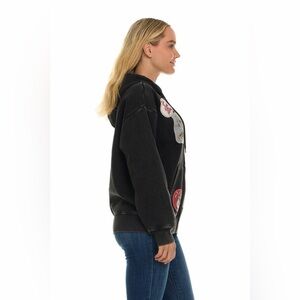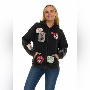 NWT Women’s The Nightmare Before Christmas full zip hoodie featuring various character patches, hoodie with drawstring, pockets, ribbed cuffs and waistband, soft 60/40 cotton/poly blend, size chart in photos, brand new in poly bag, smoke free home