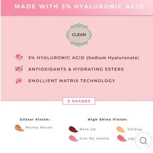 Five shades with glitter and high shine finishes. Includes Money Moves, Boss Up, 401Slay! All three tubes included! New in box