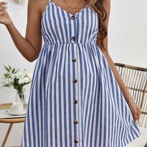 Blue And White Casual Women's Maternity Striped Print Button Front Cami Dress
