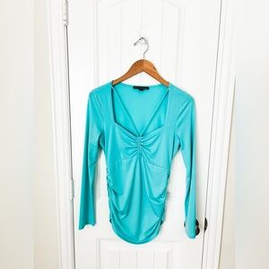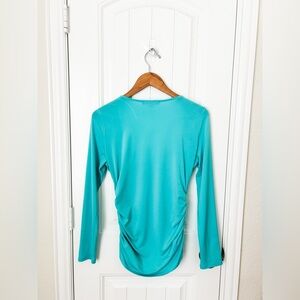 Boston Proper Ruched Strappy Aqua Blue Long Sleeve Top Size Small