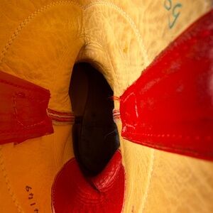 Vibrant red leather cowboy boots. Perfect for a bold statement.