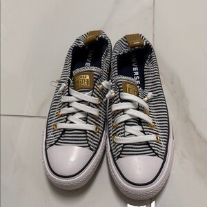 Converse womans Black and White Striped Sneakers with Tan Accents