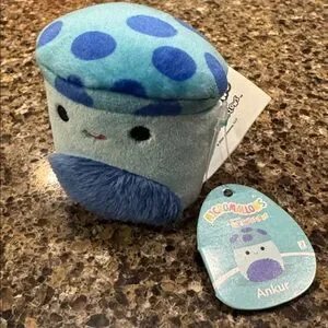 Adorable Two Tone Blue plush miniature Squishmallow Comes with a pink lip balm bundled with it for sale!
