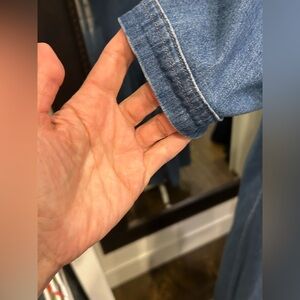 Stylish denim maxi dress by Pendleton. Features button-down front, mandarin collar, and short sleeves. In pristine pre owned condition!