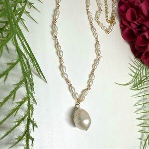 Absolutely Stunning Fabulous Individually Hand Linked Genuine Dainty Freshwater Baroque Pearl Beaded Necklace With A Large Baroque Pearl Pendant Charm. Well Made & Classic!