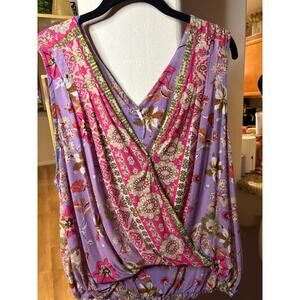 FREE PEOPLE Havana Blue Floral Print Sleeveless Surplice Top Size Large 8-12