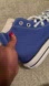 Vibrant royal blue high-tops. Classic white laces and toe cap. Signature Converse style.