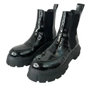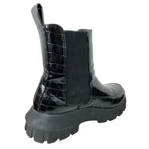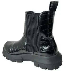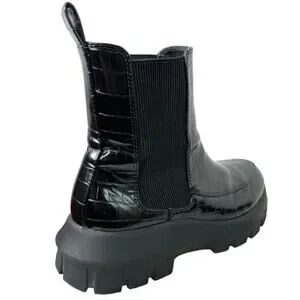 Embossed faux leather Chelsea boots with a chunky tread that adds a bit of flare. Elasticated side goring and a heel tab provide easy slip on/slip off wear.