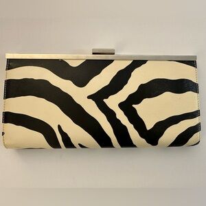 Chic zebra pattern clutch. Bold black and cream design. Ideal for a statement look.