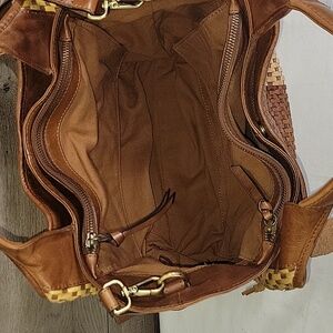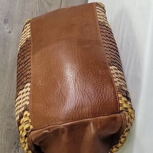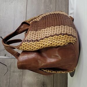 Made in India Brown and Yellow Woven Leather Tote Crossbody Bag