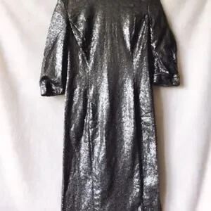 DESCRIPTION: Your time to shine! Glittering sequins make an ultra-glam statement on this dress, featuring a body-con sheath silhouette.