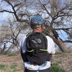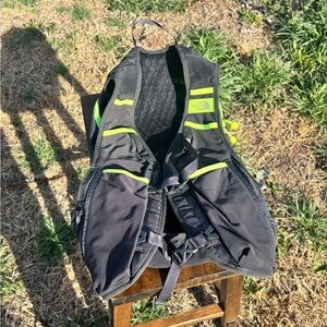 Black vest with lime accents. No tears or major wear. Zippers are great. No hydration included… AI says color is gray, I say black!