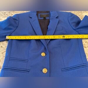 This J. Crew blazer in a striking blue hue features a tailored fit and classic notched lapels, perfect for a polished and professional appearance. Its structured silhouette ensures versatility for various occasions.