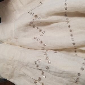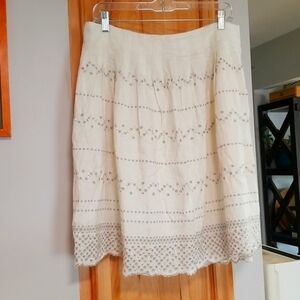 Linen A Line Skirt Robin Howe Size 12 Womens Silver Thread Detail On Cream