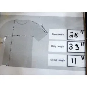 Made in China. Chest 28", Body Length 33", Sleeve Length 11"