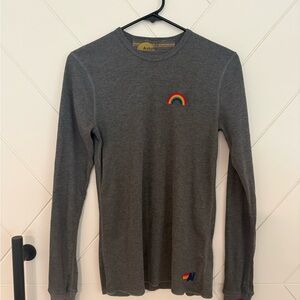 Aviator Nation Ribbed Gray Long Sleeve Shirt with Rainbow Patch
