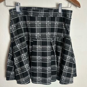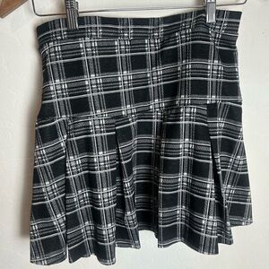 Black & White Plaid Pleated Mini Skater Skirt Size Large | Preppy Winter Style