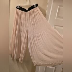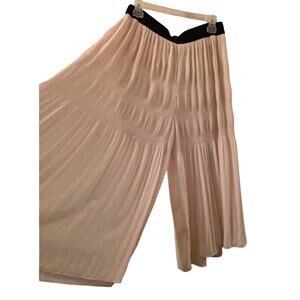 Zara Womens Super Wide Leg Pleated Tiered Trouser Pants Cream & Black Size LBoho Cottagecore Beachy Cruise Vacation Dressy Office Special Occasion Wedding Guest Bridal Shower Baby Shower