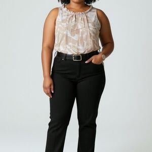 Elevate your style with this chic sleeveless tan blouse. Perfect for versatile wear, its soft fabric ensures comfort all day. measurements are in the pictures and if you have any questions just drop them below.