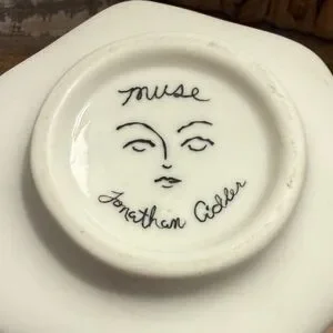 Jonathan Adler White Ceramic Face vase with Blue Interior