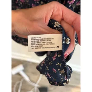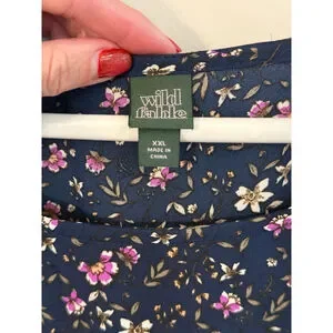 Wild Fable Floral Babydoll Tunic Dress XXL Boho Long Sleeve Navy Pink
