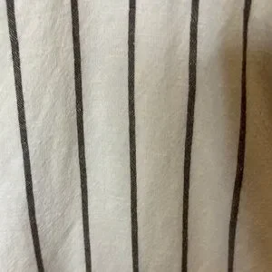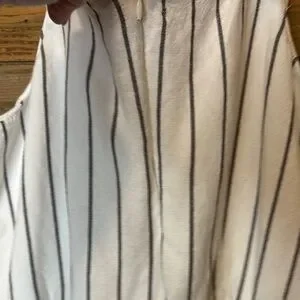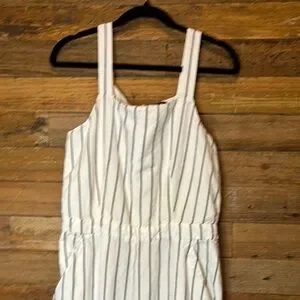 Ann Taylor Loft linen jumpsuit. Elevate your style with this chic striped white jumpsuit. Perfect for any occasion, it offers a comfortable fit and a modern look. Super cute! Sz medium