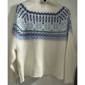 Old Navy Sky Blue Snowflake Off White Icelandic Fair Isle Sweater XL