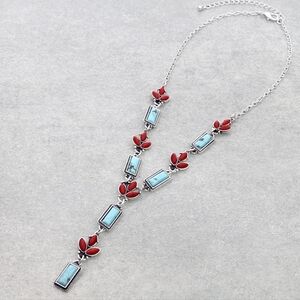 NWT Silver, Turquoise, and Red Western Boho Gemstone Necklace