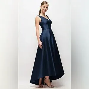 Alfred Sung SLEEVELESS PLEATED SKIRT HIGH LOW DRESS WITH POCKETS IN MIDNIGHT NAVY Size 10R